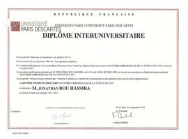· Diplômé en anatomie chirurgicale de la tête et du cou (Paris V)